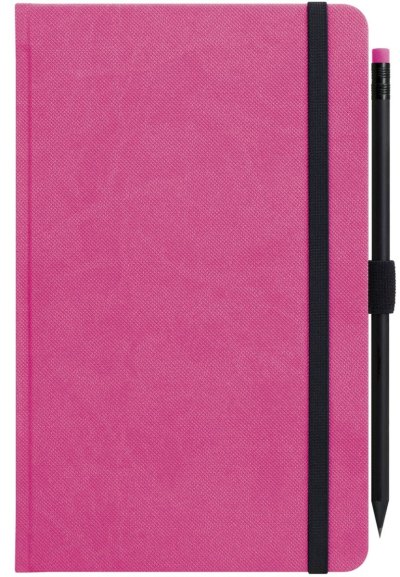 Stylový zápisník ve výrazné růžové barvě je ideálním společníkem pro každodenní úkoly a poznámky. Díky praktické gumičce pro bezpečné uzavření a elegantní černé tužce v držáku budete mít vše důležité vždy po ruce.