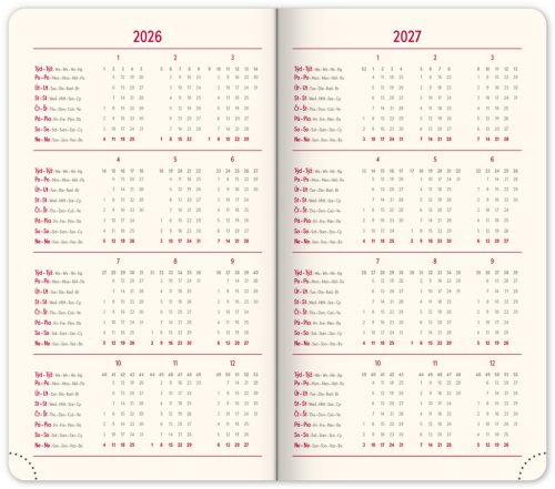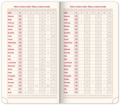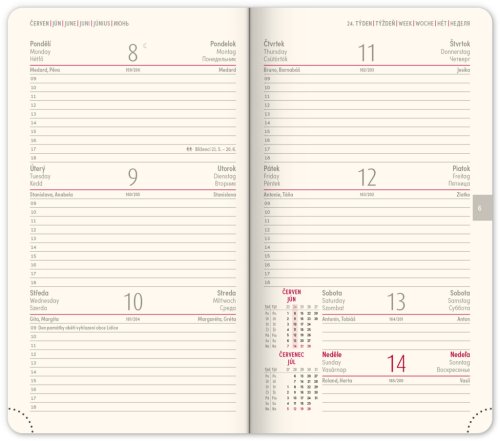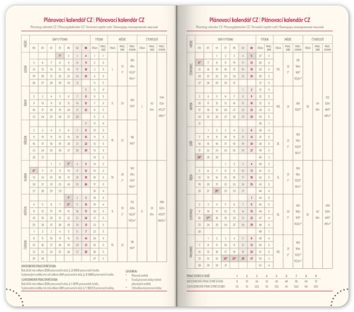Nová, cenově dostupná řada diářů s obálkou z ekologického papíru spojuje styl a udržitelnost. Týdenní rozložení s česko-slovenským kalendáriem a doplňkovou angličtinou, němčinou, maďarštinou a ruštinou.