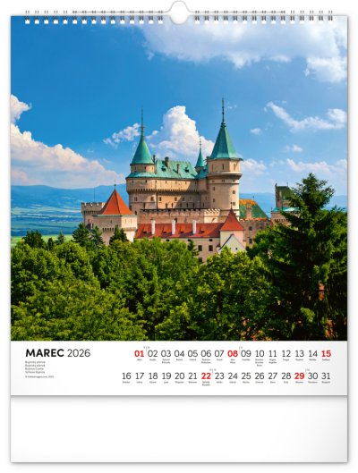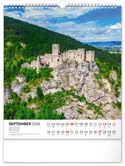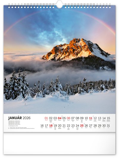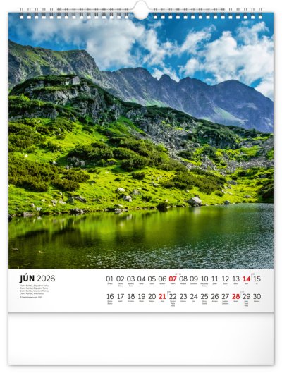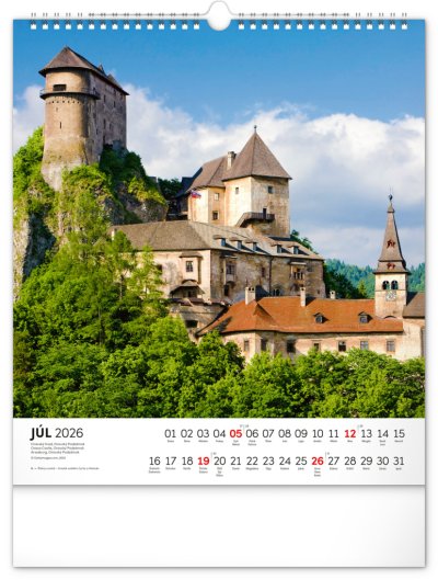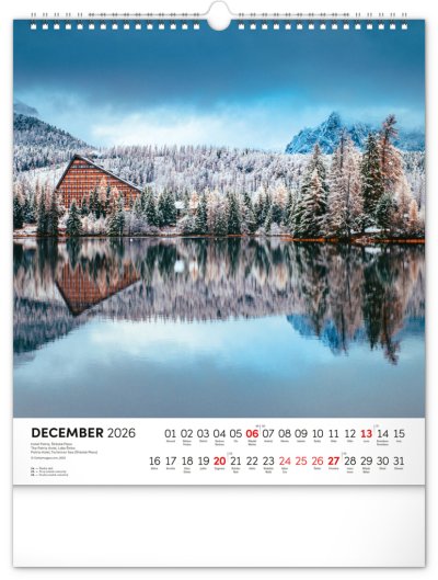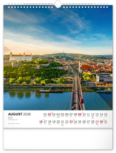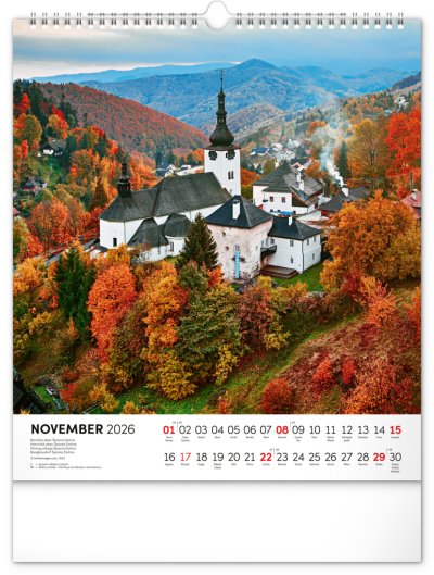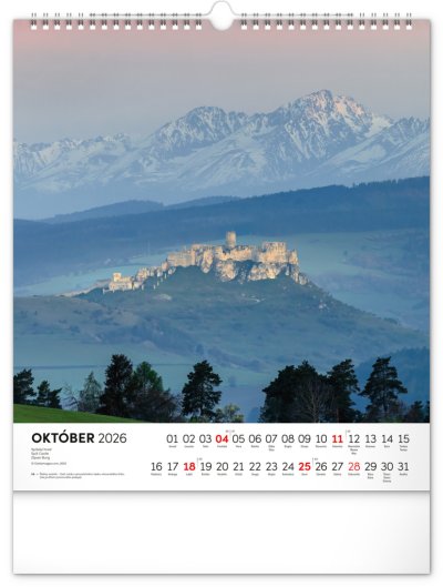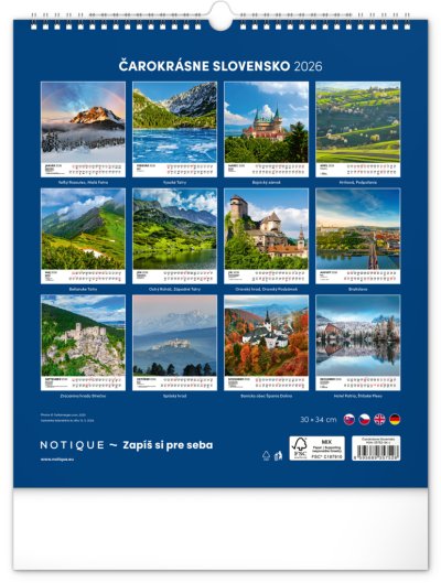Přírodní a kulturní dědictví Slovenska na stránkách kalendáře v oblíbeném výškovém formátu. Fotografie doplňuje slovenské kalendárium se zvýrazněnými svátky a nedělemi.