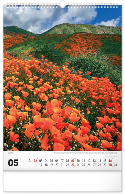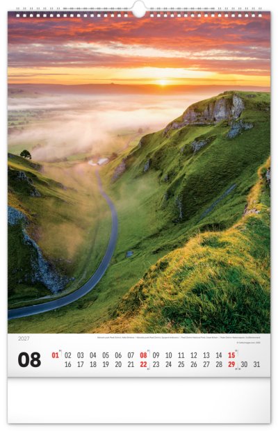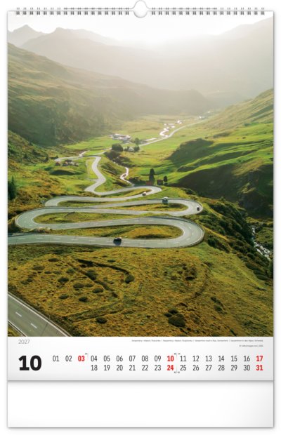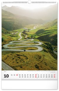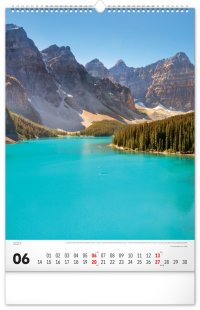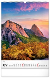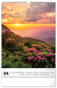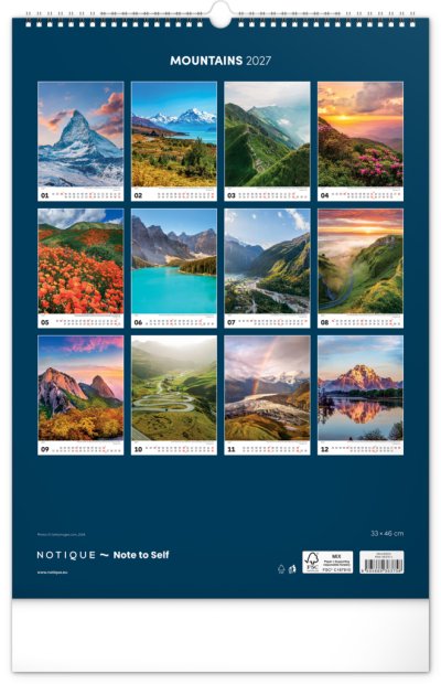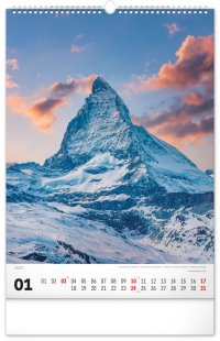 Nástěnný kalendář v atraktivním výškovém formátu obsahuje fotografie majestátních hor z Nového Zélandu, Islandu, Švýcarska nebo Kanady. Fotografie jsou doplněny jednoduchým kalendáriem.