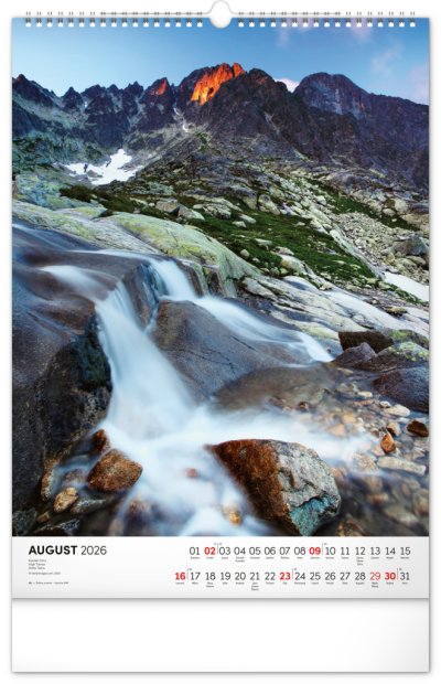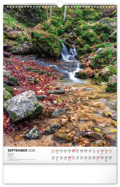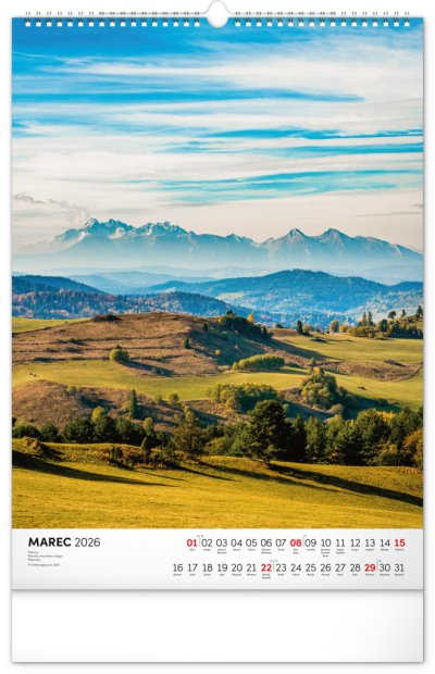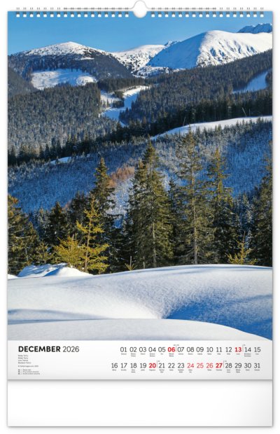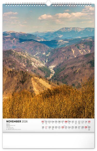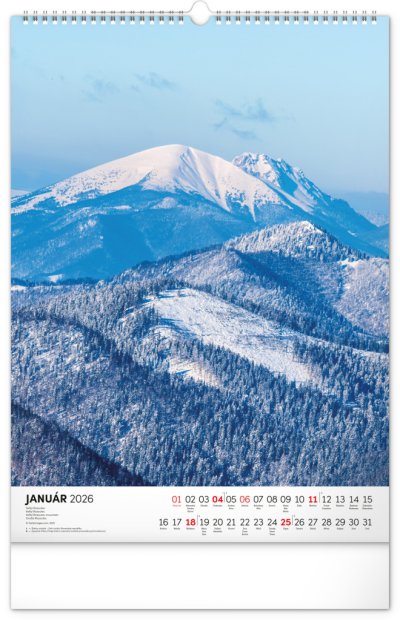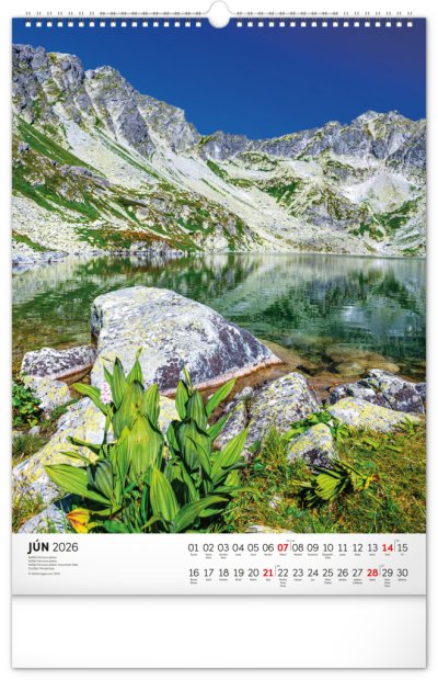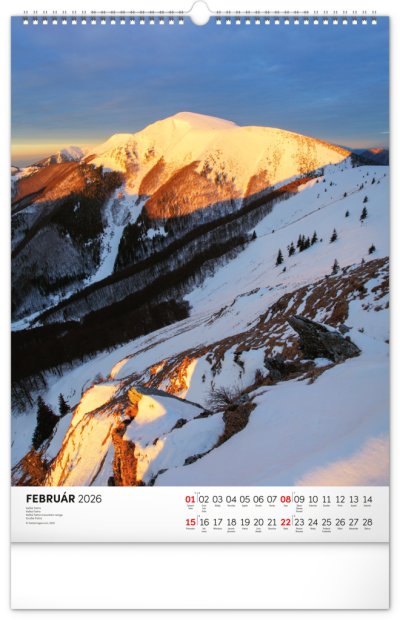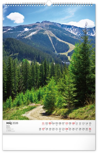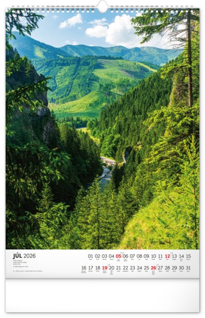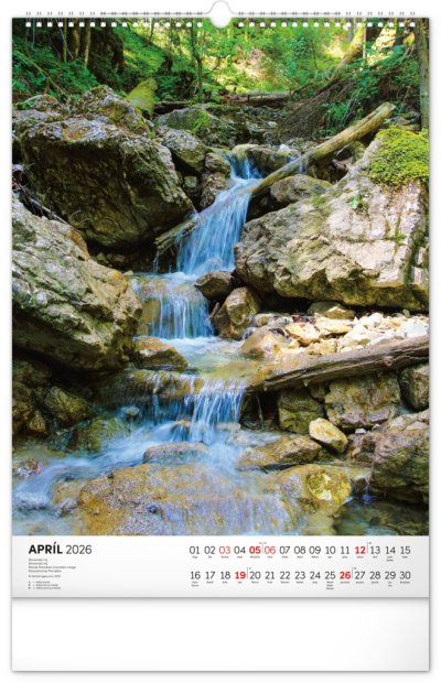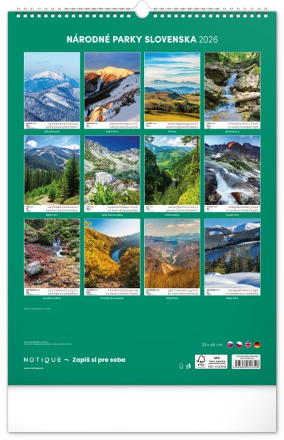 Nástěnný kalendář obsahuje dvanáct barevných fotografií ze slovenských národních parků. Obsahuje slovenské kalendárium se jmény na bílém pozadí.