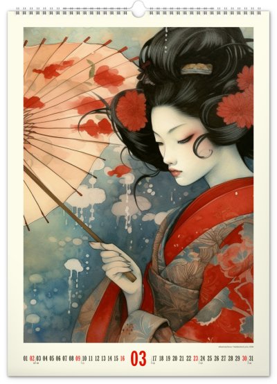 Velkoformátový kalendář s pečlivě vybranými klasickými plakáty s motivy japonské kultury. Propracované detaily a živé barvy lze obdivovat na velkém formátu kalendáře s vysokou gramáží papíru.