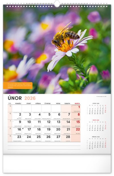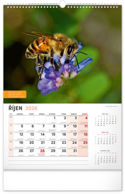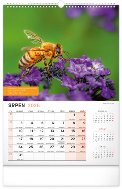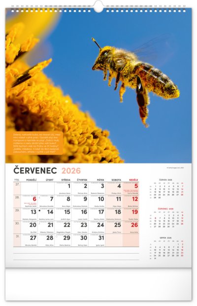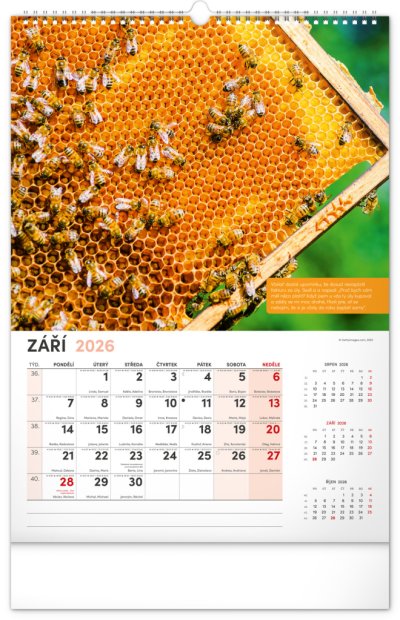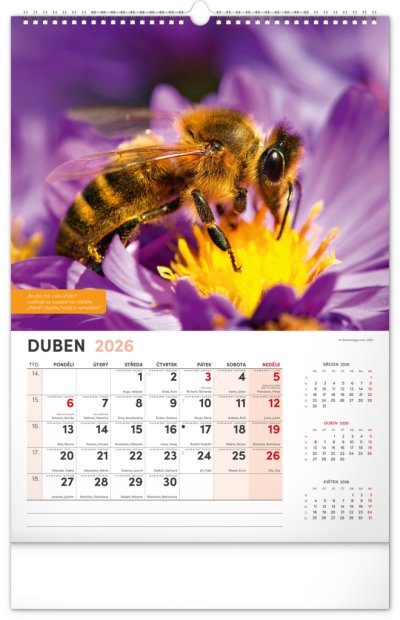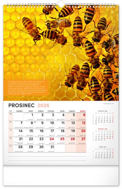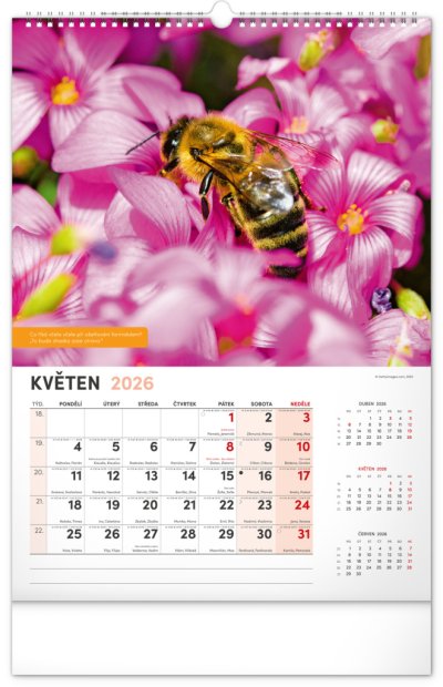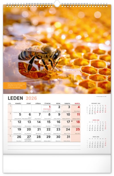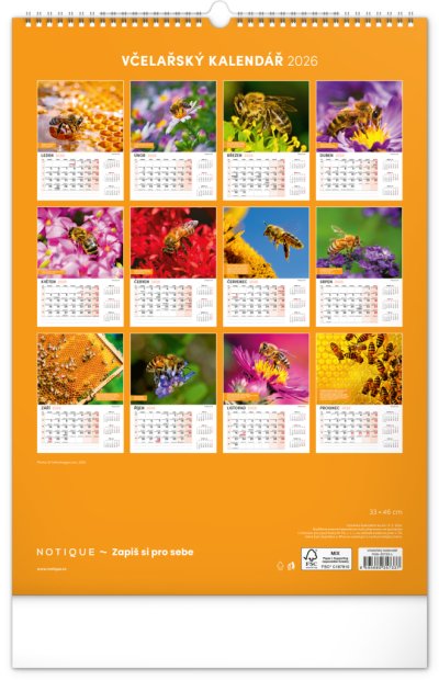 Nástěnný kalendář pro všechny začínající i pokročilé včelaře. Fotografie každý měsíc doplňují pranostiky, včelařská moudra a co by měl v daný měsíc včelař udělat. Kalendář obsahuje české kalendárium se jmény a svátky, také památné dny a východy a západy slunce. S naším kalendářem se budete hned pustit do včelaření!