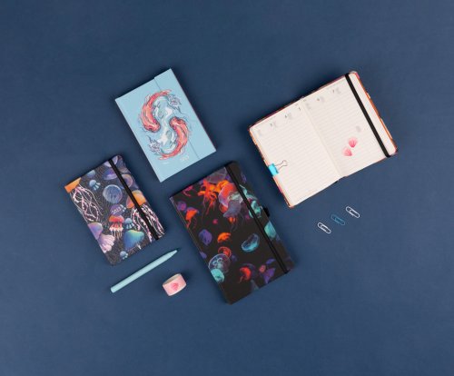 Kvalitní linkovaný notes v pevných deskách s uzavíráním na gumičku, poutkem na tužku a vnitřní kapsou na drobnosti. Uvnitř najdete 172 tečkovaných stran na žlutém papíře pro zapsání všech vašich nápadů. Linkovaný zápisník můžete použít jako deník, psát do něj hluboké myšlenky nebo pracovní poznámky.