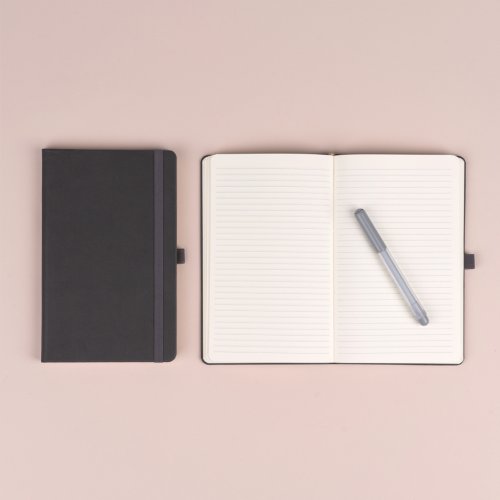 Praktický a lehký linkovaný notes v klasické šedé barvě má povrch s hrubší strukturou, na který si můžete nechat vyrazit logo společnosti. Notes má pevnou knižní vazbu a zakulacené rohy, poutko na tužku, elastickou gumičku a textilní záložku. Linky mají 6 mm a jsou na kvalitním žlutém papíře.