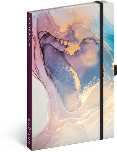 Linkovaný notes v pevných deskách s uzavíráním na gumičku, kapsou na drobnosti a poutkem na tužku. 172 stran na žlutém papíře.