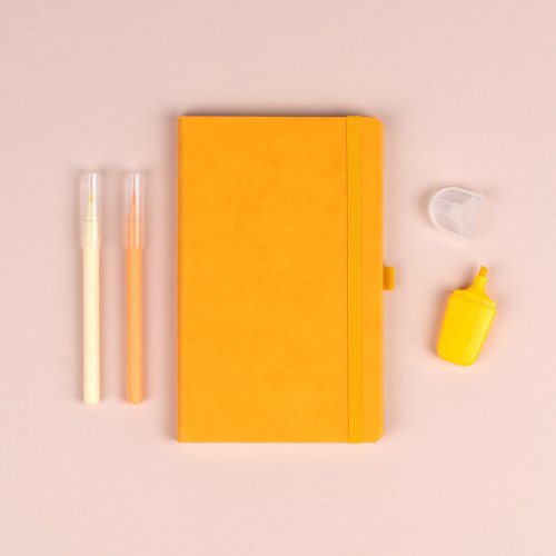 Praktický a lehký tečkovaný notes v trendy žluté barvě má povrch s jemnou strukturou, na který si můžete nechat vyrazit logo společnosti. Notes má pevnou knižní vazbu a zakulacené rohy, poutko na tužku, elastickou gumičku a textilní záložku. Tečky mají 5 mm a jsou na kvalitním žlutém papíře.