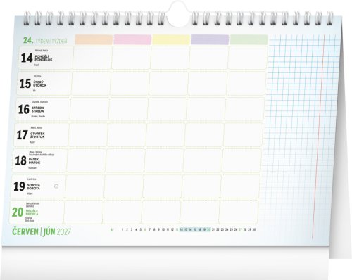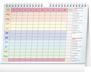 My všichni školou povinní víme, jak důležité je najít balanc mezi povinnostmi a zábavou. Čas si může naplánovat až pětičlenná rodina do sloupečků na celý týden. Obsahuje české a slovenské kalendárium od srpna 2025 do srpna 2026, rozvrhy hodin a praktický háček k zavěšení.