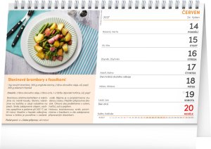 Stolní kalendář Recepty za kačku nabízí 53 tipů na rychlé a levné pokrmy! Sami se budete moci přesvědčit, že vařit se dá chutně a zároveň levně. Týdenní kalendárium s prostorem pro poznámky obsahuje také svátky, památné dny, měsíční fáze a přehled na celý rok.