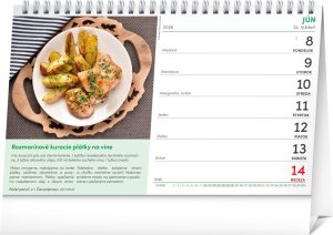 Pokud vás zajímají osvědčené recepty našich babiček, jejichž základem je poctivá domácí kuchyně, pak je tento kalendář je přesně pro vás. Stolní kalendář plný těch nejlepších receptů slovenské kuchyně. Přejeme vám dobrou chuť! Kalendář obsahuje týdenní slovenské kalendárium se jmény, svátky a památnými dny.