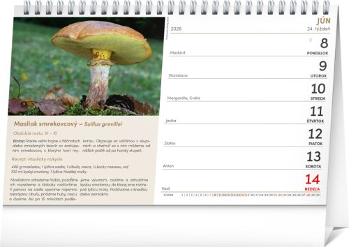 Houbařský kalendář je ideální pro všechny nadšené houbaře. Najdete v něm známé i méně známé druhy hřibovitých hub, popis jejich biotopu, kuchyňské využití a vliv na zdraví. Texty a fotografie připravil odborník a mykolog Jaroslav Malý. Stolní kalendář s českým kalendáriem obsahuje svátky a památné dny, měsíční fáze a přehled na celý rok.