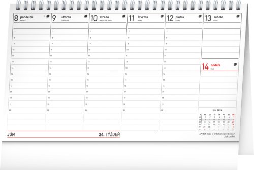 Přehledný daňový kalendář, díky kterému nezapomenete na žádnou daňovou povinnost, a navíc se seznámíte s řadou zajímavých citátů slavných osobností. Sloupcové kalendárium obsahuje měsíční přehled v každém týdnu, znamení zvěrokruhu, slovenská jména, svátky a památné dny.