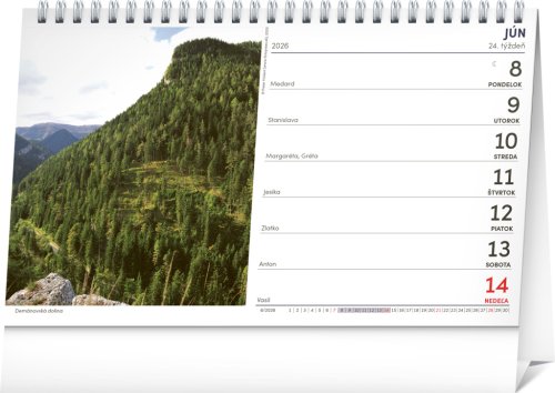 Působivé snímky slovenské krajiny a pamětihodností ve stolním kalendáři s prostorem pro poznámky. Čtvero ročních období zachycených na 53 fotkách. Načerpejte inspiraci a vydejte se na výlet do těchto malebných míst. Fotografie doplňuje slovenské týdenní kalendárium se jmény, svátky a památnými dny.