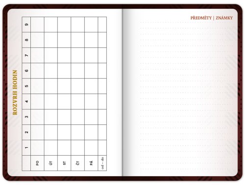 Praktický diář pro všechny větší školáky a studenty s motivem Harryho Pottera. Obsahuje taháky z matematiky, fyziky, chemie a angličtiny. Hodit se budou také rozvrhy hodin a přehled termínů prázdnin.