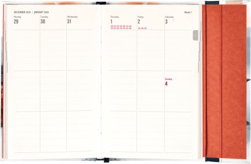 Týdenní diář v anglickém jazyce s mezinárodními svátky a praktickým magnetickým uzavíráním je ideální volbou pro ty, kteří chtějí mít své plány přehledně pod kontrolou. Nabízí sloupcové rozvržení jednotlivých týdnů s dostatkem prostoru pro každodenní poznámky. Součástí jsou praktické měsíční přehledy, ideální pro plánování dovolených či prázdnin.