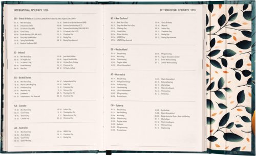 Týdenní diář v anglickém jazyce s mezinárodními svátky a praktickým magnetickým uzavíráním je ideální volbou pro ty, kteří chtějí mít své plány přehledně pod kontrolou.
