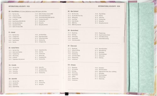 Týdenní diář v anglickém jazyce s mezinárodními svátky a praktickým magnetickým uzavíráním je ideální volbou pro ty, kteří chtějí mít své plány přehledně pod kontrolou.