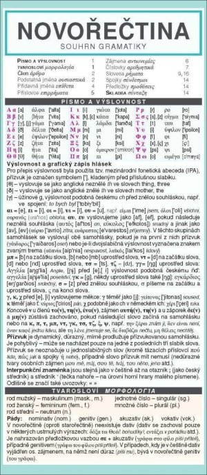 Koncentrovaný přehled sumarizuje učební látku – písmo a výslovnost, tvarosloví, skladba. Přehledné členění, grafická úprava a volba barev umožňuje rychlou orientaci v textu a snadnější zapamatování.