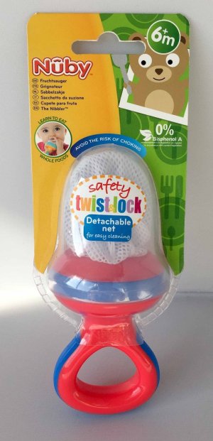 Nibbler: INSTRUKCE K POUŽITÍ: Jemně stiskněte boční strany kroužku. Otočte šroub doleva a zvedněte šroub. Vložte předměty, které mají být požuty, do síťky. Stiskněte a otočte okraj, aby se jídlo uzamklo v Nibbleru. Náhradní síťky jsou k dispozici k zakoupení. NA VÝMĚNU SÍTKY: Jemně stiskněte boční strany kroužku. Otočte šroub doleva a zvedněte šroub. Vyberte síťku a nahraďte ji novou. Pro bezpečnost vašeho dítěte a jeho zdraví: UPOZORNĚNÍ: Tento výrobek vždy používejte pod dohledem dospělé osoby. Vždy zkontrolujte teplotu jídla před krmením. Před každým použitím zkontrolujte výrobek. Vyhoďte jej při prvních známkách poškození nebo slabosti. Neponechávejte jej na přímém slunci ani v horkém prostředí. Nenechávejte dítě běhat nebo chodit s mísou/talířem. Nikdy nenechávejte dítě bez dozoru při používání tohoto nebo jiného výrobku pro děti. Tento výrobek není hračka. Průměrná životnost síťky je 3 měsíce v závislosti na používání. ČIŠTĚNÍ: Aby se zajistila hygiena: Před prvním použitím omyjte. Lze mýt v myčce nádobí (pouze horní koš) nebo ručně umýt v teplé vodě s jemným mýdlem. Nepokládejte do spodního koše myčky nádobí ani nepoužívejte agresivní čistící prostředky, protože by to mohlo poškodit výrobek. Důkladně opláchněte. Uchovejte tyto informace.