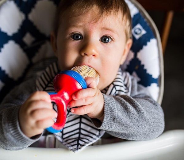 Vložte malý kousek ovoce, zeleniny nebo sušenky a nechte dítě poznávat nové chutě.