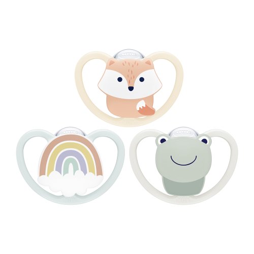 Naši nejmladší mají od počátku vlastní hlavu, ale také úplně odlišné fyzické vlastnosti. Dětská pokožka je velmi jemná a citlivá. NUK vynalezl nový dudlík NUK Space, aby chránil dětskou pokožku tím nejlepším možným způsobem a poskytl vašim potomkům maximální pohodlí za každé situace. Dudlík zaujme svou zploštělou a úzkou savičkou, která poskytuje dostatečný prostor pro přirozené sací pohyby. Dudlík NUK Space vyhovuje perfektně dětské pusince během sání. Více než 95 % miminek dudlík NUK bez problémů přijme. Dudlík NUK Space má také extra velké otvory pro ventilací, které se starají o maximální cirkulaci vzduchu a umožňují dětské jemné pokožce dýchat. Z tohoto důvodu by 99 % maminek doporučilo dudlík NUK Space pro miminka s citlivou pokožkou. Model NUK je dostupný v různých designech. Roztomilý 3D zvířecí motivy v krabičce, která šetří místo a dá se použít také na cestování. Přibalte dudlík NUK Space do své kabelky nebo tašky na pleny a mějte ho po ruce pokaždé, kdy bude potřeba. Cestovní krabička je vhodná také pro sterilizaci v mikrovlnné troubě. Díky tomu vám bude dudlík NUK Space pomocníkem na dlouhou dobu. Nezávislý průzkum trhu s 114 maminkami, Německo 2018.