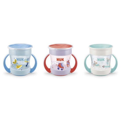 Naučit pít Vaše dítě samostatně je ve vašich rukách. Hrneček NUK Mini Magic Cup umožňuje i těm nejmenším pít jako velké děti. 360° pitný okraj podporuje dítě ve snaze učit se pít podél celého okraje - skoro jako u běžného hrnečku. Jediný „kouzelný rozdíl“ je ten, že nápoj z hrnečku nevyteče díky silikonovému disku, který utěsňuje víčko zevnitř. Pití je dětská hra - stačí jednoduše sát hranu hrnečku. Hrneček je navíc mimořádně malý a snadno se drží. Díky ergonomicky tvarovaným držátkům ho snadno mohou držet i malé prstíky a ručky. Abyste hrneček Mini Magic Cup udrželi čistý a v bezpečí, ať už jste kdekoliv, součástí je ochranné víčko. Hrneček NUK Mini Magic Cup - pití jako u velkých dětí, přizpůsobené pro ty nejmenší.Hrneček je vyroben z vysoce kvalitního a odolného materiálu, neobsahuje BPA a je vyzdoben roztomilými motivy. Skládá se z několika jednotlivých dílů, které lze během chvilky rozložit a složit a jednoduše se čistí. Hrnečky NUK Evolution Cups - správný hrneček pro každé vývojové stádium.Naučit se samostatně pít je jedním z nejdůležitějších kroků ve vývoji miminka a je opravdovou výzvou, pokud jde o trpělivost a dovednost. Právě proto jsme vyvinuli hrnečky Evolution Cups - hrnečky ve dvou velikostech a s různými nástavci na pití, které „rostou“ společně s dítětem. Díky široké škále možných kombinací nabízí tato řada hrnečků ten pravý hrneček pro každou učící fázi. Každý nástavec je navržen tak, aby vyhovoval jednotlivým učícím fázím a bylo snadné ho se zvyšujícími se schopnostmi miminka vyměnit. Všechny tři nástavce jsou také zcela bezpečné proti vytečení. Díky tomu mají děti vždy takovou pomoc, jakou právě potřebují, a zároveň je učení se pít baví. Hlavní vlastnosti: 360° pitný okraj, díky kterému lze pít ze všech strans ergonomicky tvarovanými držátky pro snadné drženípojme 160 ml tekutinyodolné proti vytečení s ochranným víčkem na cestováníneobsahuje BPA