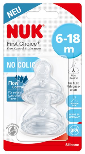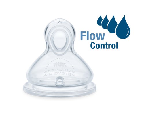 Silikonová savička FLOW Control značky NUK je určená pro děti od 6 do 18 měsíců a usnadní jim přechod k samostatnému pití. Nekapající savička má přirozený a správný tvar pro vývoj čelisti. Kompatibilní se všemi produkty z řady NUK First Choice.Anti-colic AIR systém – zabraňuje polikání vzduchu při krmení a eliminuje tak vznik kolik a bolavého bříška u dětí.