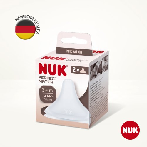 Savička NUK Perfect Match, vyrobená z měkkého silikonu, neobsahuje BPA, velikost M, od 3 měsíců, 2 kusy