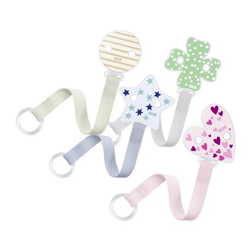 Dvojitá funkce: vhodná pro všechny dudlíky s a bez kroužku Pohodlnější: snadná fixace Praktická a bezpečná: systém klipu pro otevírání a zavírání jednou rukou - žádné ostré hrany Prvotřídní kvalita: knoflík vyrobený z vysoce kvalitního tritanu s premiovým potiskem, v kombinaci se pružnou textilní stuhou Trendy: moderní designy, které pasují k NUK Trendline dudlíkům a FC+ lahvím