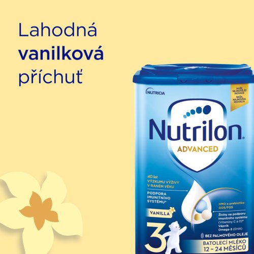 Navíc Nutrilon 3 Vanilla obsahuje jemnou vanilkovou příchuť, díky níž bude Vaše dítě s oblibou pít mléko Nutrilon i v batolecím věku. Nutrilon 3 Vanilla je přizpůsoben výživovým potřebám dítěte od jednoho roku.