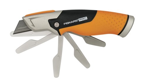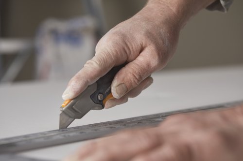 Univerzální nůž s pevnou čepelí lze ovládat rychle a bezpečně jednou rukou. Má ergonomickou rukojeť s technologií SoftGrip. Obsahuje unikátní kryt skládací čepele pro maximální bezpečnost. Rukojeť je kovová pro optimální vyvážení a odolnost, za končení je z tvrzeného kovu, poskytuje spolehlivou odolnost vůči nárazům a pádům. Má zásobník pro uložení 5 ks čepelí. Výška: 30 mm, délka: 259 mm, šířka: 109 mm, hmotnost: 232 g. Záruka: 5 let.