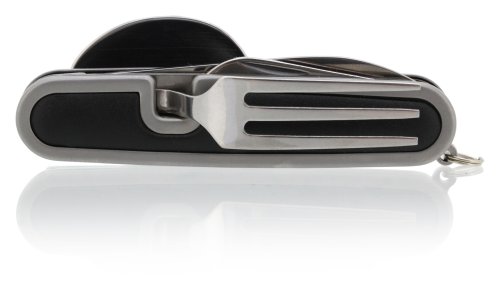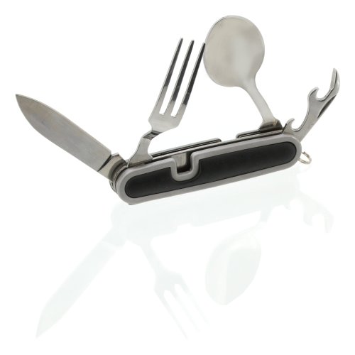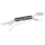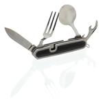 Kapesní nůž Cattara Camping využijete při stanování, na túrách, výletech do přírody i doma na zahradě. Nožík se skládá z celkem 5 nástrojů – vidlička, otvírák na plechovky a víčka lahví, lžíce a čepel nože. Rozděluje se na 2 části povytažením jedné části vpřed. Najdete na něm také kroužek pro připevnění na klíčenku. Jelikož má skládací nůž malé rozměry, vejde se vám do kapsy.