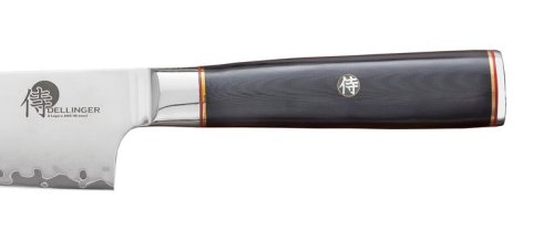 Na výrobu rukojeti nože Dellinger se používá velmi kvalitní materiál G-10. Udrží si svou tvrdost a pevnost. Rukojeť zdobí středový mozaikový nýt se znakem samuraje. Ten zároveň zajišťuje její pevné spojení s ostřím. Rukojeť je vyvážená a ergonomicky tvarovaná, takže se vám nůž pohodlně drží v ruce.