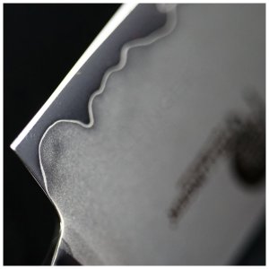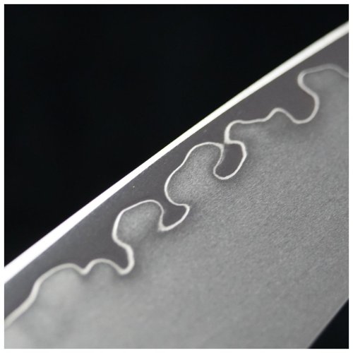 Čepel z japonské oceli AUS-10 v tvrdosti 58–62 HRC nabízí vynikající ostrost, kterou podtrhuje 15° úhel broušení. Díky trojvrstvé konstrukci je nůž mimořádně houževnatý a odolný vůči poškození. Stonewashed povrchová úprava navíc zakrývá drobné škrábance, takže nůž i po častém používání vypadá jako nový.