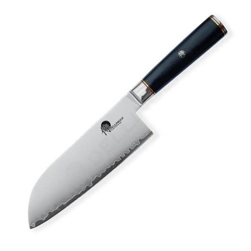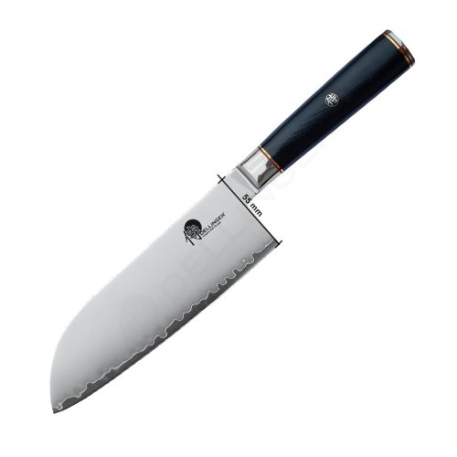 Dellinger Santoku Okami 3 layers AUS10 je univerzální japonský nůž, který si díky 180 mm čepeli typu Sheepsfoot snadno poradí s krájením, sekáním i drcením. Trojvrstvá konstrukce s jádrem z japonské oceli AUS-10 a povrchovou úpravou stonewashed zajišťuje výjimečnou odolnost, houževnatost i snadnější údržbu.