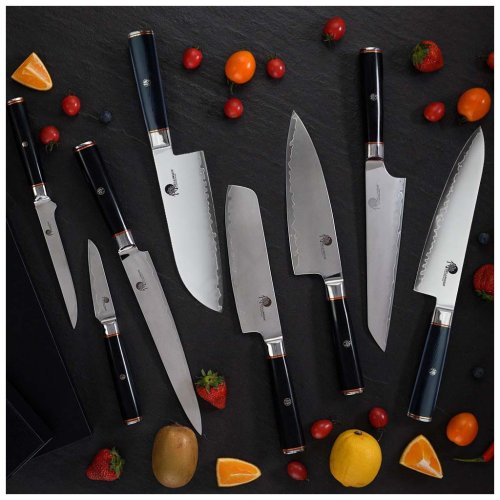 Ergonomická rukojeť z materiálu G-10 padne perfektně do ruky a nabízí vysokou stabilitu i při delší práci. Ozdobný mozaikový nýt se znakem samuraje odkazuje na tradiční japonské řemeslo. Nůž je pečlivě vyvážený, což zajišťuje přesné řezy a minimální únavu ruky.