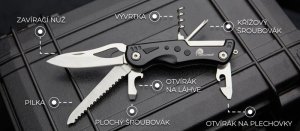 Multifunkční nůž Dellinger kombinuje hned 6 praktických nástrojů v jednom kompaktním provedení, takže se stane ideálním společníkem na cesty i do přírody. Využijete ho při kempování, turistice i běžném použití, kde oceníte jeho univerzálnost a snadné použití.