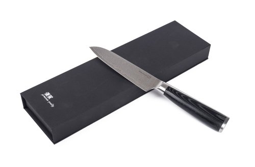 Rukojeť je vyrobena z extra pevného a odolného laminátového materiálu, nazývaného Micarta. Micartu tvoří plátno nebo skelná tkanina s termostatickou pryskyřicí. Výsledkem je pevná, houževnatá rukojeť, která nepodléhá zkáze času. Hladké, rovné, čisté linie tohoto nože se stanou ozdobou každé kuchyně.