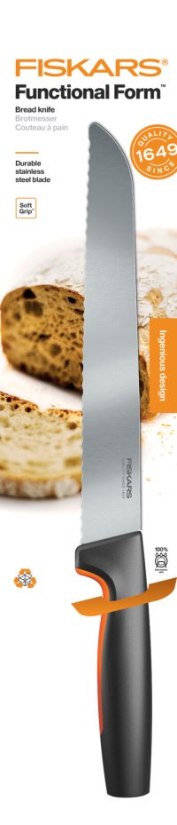• Nůž na pečivo Fiskars Functional Form ™ má dlouhou čepel se zoubky a je navržený pro pohodlné používání se snadnou údržbou