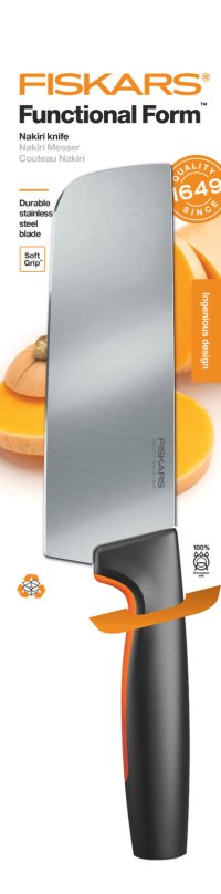 Univerzální nůž asijského typu se širokou čepelí ideální pro krájení velkých kusů zeleniny. Výška: 2,38 cm, délka: 35,5 cm, šířka: 9 cm. Hmotnost: 0,147 kg. Původní FIS číslo 1014179.