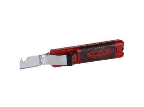 Speciální nůž pro odizolovávání vodičů. Otáčecí nůž pro kruhové a podélné řezy kabelů o průměro 8 až 27 mm. Nastavitelný držák kabelů se automaticky přizpůsobí danému kabelu. Plášt rozřízneme kruhovým otočením a tažením nože po délce kabelu. Balení na blistru. EAN 8590804009405