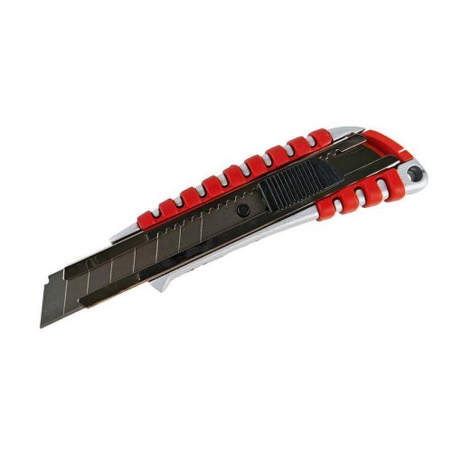 celokovové tělo nože protiskluzová rukojeť s plastovými výstupky kovová vodící lišta automatická posuvná aretace šířka čepele 18 mm do nože lze umístit až 2 náhradní břity blistr náhradní břity kód: …