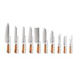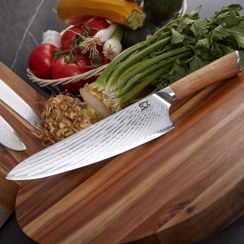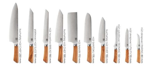 Barevně velmi atraktivní a žádané olivové dřevo se používá na výrobu rukojeti těchto krásných a kvalitních nožů. Rukojeti jsou navrženy tak, aby dokonale padly do ruky a poskytovaly pohodlí. Nože jsou dokonale vyvážené a zabraňují únavě rukou. Tím je zajištěna maximální kontrola a přesnost.