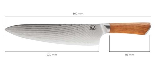 Kuchyňský nůž Chef 230 mm značky SOK zastane v kuchyni hodně práce. Díky zužování hřbetu a ostří nože do špičky má ideální tvar na každý druh krájení. Využijte ho pro porcování masa, krájení ryb nebo plátkování. Krájení bylinek nebo ořechů vám umožní i kolébkové krájení díky výše položenému hrotu. Damascénská ocel má vyšší tvrdost a odolnost vůči opotřebení, díky vzácné a unikátní kresbě oceli navíc získáte jedinečnou kombinaci krásy a luxusu s vynikajícími řeznými vlastnostmi. Nůž má ostří dlouhé 230 mm. Doporučujeme nůž i jako dárek k narozeninám nebo Vánocům pro vaše blízké.
