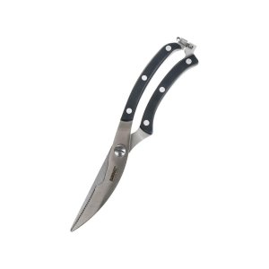 Délka nůžek celkem 25.5 cm, délka čepelí 8 / 5.5 cm. Nože jsou vyrobeny z nerezové oceli, nýtované rukojeti. Nepostradatelný pomocník při porcování kuřat a jiné drůbeže. Díky plastové rukojeti, která padne krásně do ruky, je snadná manipulace. Není vhodné do myčky nádobí. EAN 8591022396810