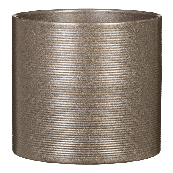 Válcovitý obal je opatřený pravidelnými, filigránskými, příčnými rýhami, které květináči propůjčují v dopadajícím světle velmi pěkný vzhled.
