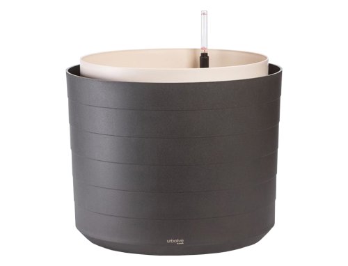 Samozavlažovací plastový obal na květník je vhodný pro pěstování stromků, palem, citrusovníků či velkých okrasných rostlin. Skvěle se v něm bude dařit keřovým i stromkovým růžím a hortenziím, doma fíkusu. Díky kuželové ucpávce je možné obal použít doma i venku. Při umístění venku není třeba do dna ucpávku dávat, aby mohla snadno odtékat přebytečná dešťová voda. Textilní popruhy usnadní vyjmutí vložky a praktická kolečka zajistí dobrou manipulaci. Prstencový zalévací prostor umožní zalévání z jakékoliv strany i přístup vzduchu ke kořenům. Množství substrátu: 60 l, množství vody: 20 l. Barva: antracitová a béžová. Průměr: 55 cm.