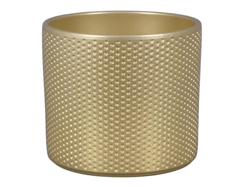 Vánoční keramický lesklý obal s tečkami ve tvaru válce je určen pro interiér. Je 100% voděodolný, glazovaný. Barva: zlatá. Průměr: 13 cm.