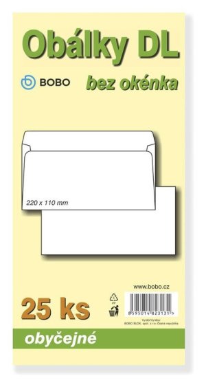 Obálky 220x110 mm, balení 25 ks.br brBalení klasických poštovních obálek ve formátu DL. Balíček obsahuje 25 kusů obyčejných obálek bez okénka.