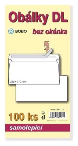 Obálka DL bez okénka, samolepicí Balení po 100ks.br brBalení klasických poštovních obálek ve formátu DL. Balíček obsahuje 100 kusů samolepicích obálek.
